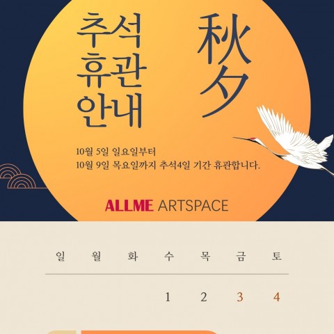 [올미아트스페이스 추석연휴 휴관 안내]올미아트스페이스를 찾아주시는 모든 분들께 깊이 감사드립니다. 한가위를 맞아 풍성한 보름달처럼 마음도 넉넉하고 따뜻한 명절 보내시기를 기원합니…